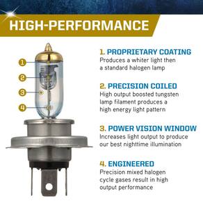 PEAK Faróis automotivos Power Vision Gold de alto desempenho 9003/H4/HB2 60/55W (pacote com 2)