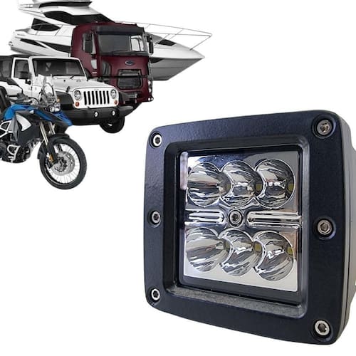 Farol auxiliar de led 6 leds retangular 18w import und Farol off road retangular com 6 leds de alta potência multiuso.