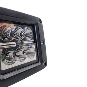 Voltagem de operação : 12-80v dc Temperatura de cor : 6000k Material : carcaça de alumínio fundido Material da lente : policarbonato automotivo Suporte: aço inoxidável Energia do led: 18w Modelo retangular, cor : carcaça preta