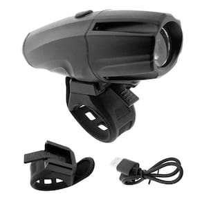 O farolete é fixado no guidão da bike e possui um farol frontal branco e um pisca traseiro vermelho, para a melhor e mais segura experiência do ciclista.