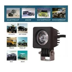 • Farol: Spot • Potência: 10W; • Tensão: 12V/24V; • Material da Carcaça: Alumínio Fundido; • Material da Lente: Policarbonato; • Possui proteção IP67 (resistente a água mas não impermeável, recomendamos passar um silicone de proteção nos contornos da lente para melhorar a vida útil do produto, pois ele não é totalmente à prova d'água); • Cor da Carcaça: Preto; • Cor da Luz: Branco; • Ângulo de feixe Spot: 30° graus; • Fluxo Luminoso 1800 Lumens; • Taxa aprova d'água: IP67; • Tempo de Vida: 30.000 Horas; • Temperatura de Cor: 6000K; • Tipo de Conector: Cabo.