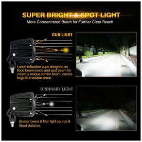 Chip 5050 de alta intensidade para super brilho. Comparado com o chip 3535 comum, as luzes LED Auxbeam de 3,5 polegadas fora de estrada têm 2 chips LED de alta intensidade 5050, pode emitir 5700 6500K luz branca com 3200lm de lúmens iluminará tudo o que você precisa ver