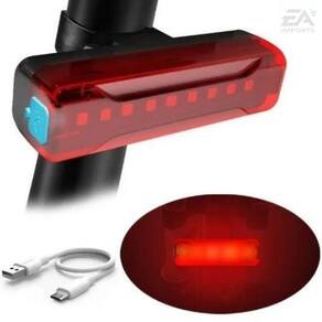 Construído com LED super brilhante Tamanho compacto, peso leve, design à prova de chuva Duração da bateria: 2h30 com luz fixa e até 6h no modo intermitente Bateria de lítio de 220 mAh Saída: 120 lúmens 4 modos de luz Cor: vermelho
