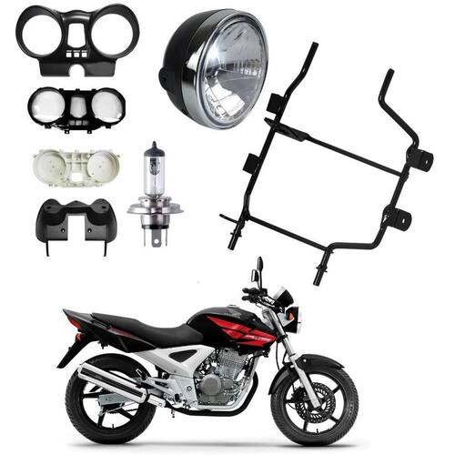 Fotos ilustrativas Produto compatível com a montadora fabricante da motocicleta indicada no Titulo - Descrição - Ficha Técnica do Anuncio - A marca do produto fabricante do produto será enviada de acordo com a marca indicada na ficha técnica/características principais ou a marca indicada na descrição do anuncio no campo marca/fabricante do produto Acompanha Marca/modelo/aplicação: Conforme ficha técnica do anuncio Duvidas utilize o campo de perguntas antes da compra, após a compra utilize o campo de mensagens Atenção aos anuncio que possuem botões para seleção os produtos serão enviados conforme sua seleção no topo do anuncio Recomendamos a instalação em oficina mecânica especializada Itens inclusos: 01 Carcaça Painel Superior Preta - 01 Carcaça Painel Interna - 01 Carcaça Painel Superior Vidro - 01 Carcaça Painel Inferior - 01 Lampada - 01 Farol - 01 Aranha Farol Compativel Com: Cbx 250 Twister Para Os Anos: 2001 - 2002 - 2003 - 2004 - 2005 - 2006 - 2007 - 2008 Marca Fabricante Produto: Dvsc Obs: Não Acompanha Parafusos Piscas Não Acompanham Lampadas Imagem Meramente Ilustrativa Marca: Não Informado