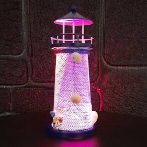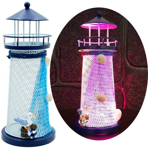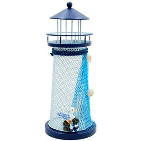 Farol Marítimo Artesanal Enfeite Náutico Metal Com LEDs 18cm Pássaro -