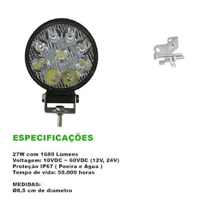 Potência LED: 27W (9peças de 3W de alta intensidade)