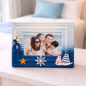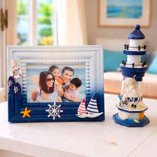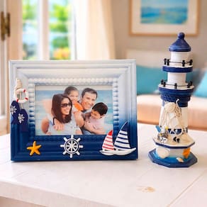 Leve o charme do mar para dentro da sua casa com o Kit Porta Retrato Farol Náutico! Ideal para quem ama decoração praiana, estilo navy e ambientes com clima de verão o ano todo