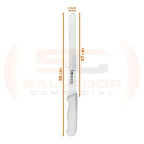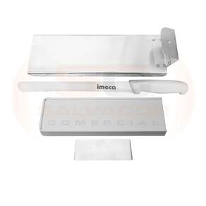 - Estrutura em polímero de alta resistência cor branca; - Faca com cabo em polipropileno branco e lâmina em aço inox 27cm; - Embalador em aço inox;