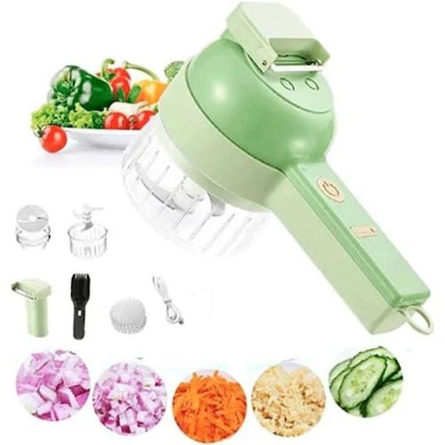 Fatiador Cortador Picador de Legumes Elétrico Portátil Usb com Escova de Limpeza Cor Verde Cortador Triturador Elétrico Multifuncional Para Vegetais E Carnes Aço Inoxidável