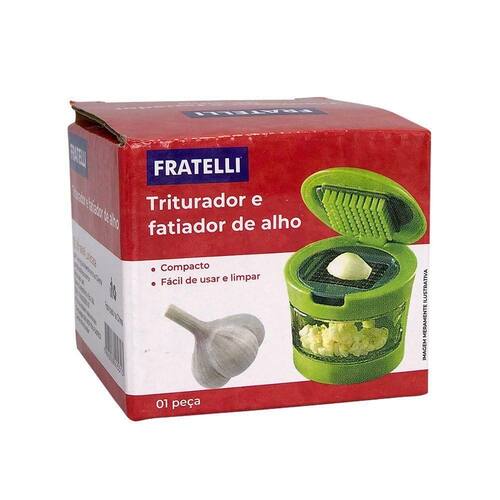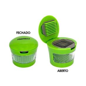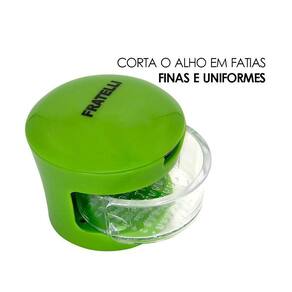 Fatiador De Alho Com Compartimento Fatiador de Alho com Compartimento Feito para facilitar e agilizar o preparo de suas receitas, esse triturador de alho com compartimento será o aliado ideal. Contando com lâminas afiadas e resistentes, o fatiador transforma o alho em pedaços minúsculos, liberando todo o seu sabor e aroma. Além disso o fatiador permite cortar o alho em fatias finas e uniformes, perfeito para adicionar aquele toque especial as suas receitas favoritas. Basta inserir o produto no topo do recipiente sobre as lâminas e abaixar a tampa para que o alho seja fatiado e caia no recipiente. Com seu design compacto, não ocupa espaço na cozinha, podendo guardar em praticamente qualquer , além de garantir mais facilidade na limpeza, o fatiador possuí compartimento e suporte das lâminas removíveis. Feito com materiais duráveis e de alta qualidade, o fatiador é resistente, garantindo que não quebre durante o uso e corra o risco de acidentes com lâmina. -Lâminas em Inox Cortes em Cubos ESPECIFICAÇÕES:Material: Plástico e InoxDimensões: Alt.: 8cm x Diâmetro : 11,3cm Peso: Aprox. 115gCor: Verde CONTÉM:01 FATIADOR DE ALHO COM COMPARTIMENTO