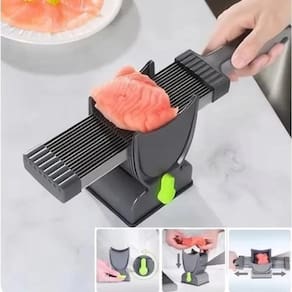 Conjunto de fatiador de carne atualizado: Experimente a preparação de refeições sem complicações com nossa máquina de fatiar carne doméstica! Equipado com 17 lâminas, este inovador cortador de carne permite cortar sem esforço carne crua fresca em 18 pedaços perfeitamente uniformes com uma única ação.-Design de aço inoxidável: invista em durabilidade com nosso cortador de carne de aço inoxidável de alta qualidade! Projetada com uma borda afiada de 8, a lâmina garante sempre um desempenho de corte de nível profissional. A ventosa inferior resistente mantém o aparador no lugar com segurança em superfícies lisas, eliminando movimentos indesejados durante o uso, para que você possa cortar com confiança.-Ajustável na espessura da sua fatia: Desfrute da máxima flexibilidade com nossa faca de açougueiro ajustável! Com dois conjuntos de lâminas, você pode escolher facilmente entre 2 mm ou 4 mm de espessura para suas fatias de carne. Transforme suas criações de cozinha fazendo tiras ou cubos de carne sem esforço-Limpeza fácil e armazenamento conveniente: simplifique a limpeza da sua cozinha com nosso cortador de carne adequado para máquina de lavar louça! Para quem prefere lavar as mãos, incluímos uma escova de limpeza para facilitar a manutenção. Além disso, seu design compacto e recurso de montagem na parede permitem fácil armazenamento, mantendo sua cozinha organizada e arrumada.-Amplamente utilizado: Este fatiador é amplamente utilizado. É cortado em rodelas finas, carnes, legumes e frutas. É utilizado no preparo de ingredientes de panela quente e na confecção de espetos de churrasco e na culinária diária. Utilize este cortador para cortar eficazmente várias carnes, para que possa facilmente satisfazer a boa manutenção da carne.Recurso:-Casa multifuncional: você pode facilmente cortar, ralar, picar, picar e outros métodos de corte de carne, atendendo às necessidades de diferentes pratos.-Corte fino de carne: O cortador de carne é especialmente projetado para cortes finos, a carne cortada é uniforme e fina, com melhor sabor.-Operação manual: sem necessidade de energia, simples e fácil de usar, economiza energia, é mais seguro e confiável.-Economia de tempo eficiente: conclua rapidamente as tarefas de corte de carne, economizando tempo e esforço, permitindo que você desfrute de cozinhar com mais facilidade.-Preservar o sabor autêntico da carne fresca: Velocidade rápida de corte de carne, não é fácil de produzir desgaste por fricção, mantém o frescor e a maciez da carne, deliciosa e nutritiva.Orçamento:Nome: cortador de carnePeso: 700gMaterial: aço inoxidável 304Tamanho:Fatiador de carne: 33,5*5,6cm;Assento da ferramenta: 13*8.7*8.5cmMétodo de limpeza: lavagem à mão/máquina de lavar louçaIngredientes aplicáveis: carne bovina/cordeiro/porco/salmão e outras carnes cruas macias desossadasIncluído no Pacote:1 conjunto de fatiador de carne