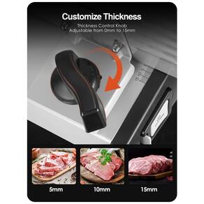 Para ser um chef O cortador de comida corta a comida com precisão, faz você parecer um BOM chef em casa. Espessura ajustável de super fino a aproximadamente 10 de espessura para cortar vários alimentos, como carne, frios, queijo, rosbife, peito de peru, legumes e frutas. Fácil de limpar recursos sem costura e removíveis facilitam a higienização. Nossa tampa de proteção de anel removível evita o acúmulo de detritos nas superfícies de corte. A lâmina, o carrinho de alimentos, a extensão da haste deslizante e o empurrador de alimentos são removíveis, permitindo uma limpeza e higienização completas. Proteção de segurança para operar o fatiador de delicatessen, você deve pressionar a trava de segurança e o botão liga , desliga simultaneamente para iniciar, evitar a operação de erro. Os pés de ventosa antiderrapantes mantêm o fatiador de carne estável durante o trabalho. Lâmina de aço inoxidável universal a máquina de fatiador de carne ostba possui a lâmina serrilhada de aço inoxidável de , acionada por 150 watts de poder de corte rápido e de alto rendimento, ajudará você a manter um corte afiado consistente Marca: Não Informado