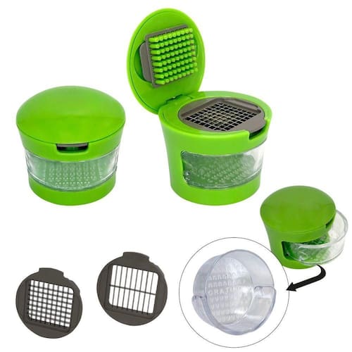 Especificações: - Material: Plástico e Aço Inox - Medida: 08cm x 11,3cm - Lâminas: 02 - Formato: Fatias e Cubinhos - Cor: Verde - Peso: 115 gramas ============================================================ Devido à diferença entre monitores e iluminação diferentes, pode haver variação na tonalidade apresentada no anúncio. Medidas muito aproximadas. Ean: 3250751594144