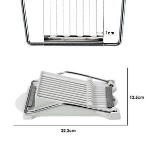 Fatiador de Presunto, Queijo, Frutas, Ovos Cozidos - Fios de Lâmina InoxDescrição: O Fatiador é o item perfeito para incrementar suas receitas e facilitar seu dia a dia na cozinha. Com 10 afiados fios de corte em aço inoxidável, você poderá fatiar presunto, queijos, ovos cozidos, frutas, vegetais e outros alimentos de forma rápida e precisa. Os fios possuem espaçamento de 1cm entre cada um, garantindo tamanhos uniformes e ajudando você a preparar sanduíches, saladas e outros pratos de dar água na boca. Com rotação de 180° e uma área de corte de 10cm X 10cm, o Fatiador é versátil e eficiente. Feito com materiais de alta qualidade, possui corpo em plástico ABS resistente e lâminas em aço inoxidável duráveis. Especificações Técnicas:- Modelo: Fatiador Presunto Fios Lâmina- Material: Plástico ABS, Aço Inoxidável- Cor: Branco- Dimensões do Produto: 22,2cm (Comprimento) X 12,5cm (Largura) X 5cm (Altura)- Área de Corte: 10cm X 10cm- Peso: 200gItens Inclusos na Embalagem:- 01x Fatiador Presunto Fios LâminaGarantia: Oferecemos 3 meses de garantia para o Fatiador. Além disso, você tem 7 dias para testar o produto e, caso não fique satisfeito, poderá devolvê-lo sem custo algum.Não perca mais tempo cortando alimentos manualmente! Adquira agora mesmo o Fatiador de Presunto, Queijo, Frutas, Ovos Cozidos - Fios de Lâmina Inox e tenha mais praticidade e precisão em suas preparações culinárias. Aproveite essa oferta e compre já o seu! Marca: innovaree-commerce