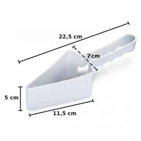 O fatiador de bolo e torta triangular é um utensílio prático e funcional feito de plástico durável. Seu design triangular permite cortes precisos, enquanto o cabo com apoio para os dedods oferece conforto e segurança durante o uso. Ideal para cortar e servir porçõpes perfeitas de bolos e tortas com facilidade.