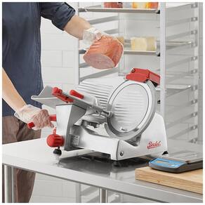 A Fatiadora de Carne Berkel B10SLC é a solução ideal para operações com volume moderado. Com lâmina de aço carbono de 25,4 cm, ela produz fatias uniformes de até 23mm. Equipada com um motor de 0,25 CV e mesa de 76cm, permite o corte de grandes peças de carne, queijo e outros alimentos. Além disso, possui afiador de faca de dupla pedra na parte superior, desmonta sem necessidade de ferramentas para limpeza fácil e segura e conta com um protetor de anel de faca para uso sem riscos. Com estrutura em aço inoxidável durável e acabamento em alumínio anodizado, garante higiene, durabilidade e limpeza rápida. Esta unidade funciona com conexão elétrica de 110V.