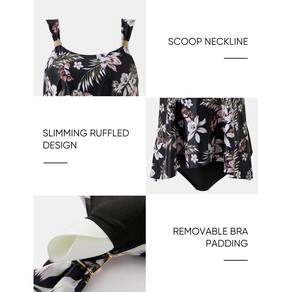 SUUKSESS Tanquíni feminino de cintura alta com babados e controle de barriga, 80 preto floral