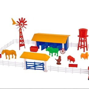 Fazendinha New Farm - Adijomar A Fazendinha New Farm da Adijomar oferece uma experiência educativa única para as crianças. Ao interagir com os diferentes elementos da fazenda, elas desenvolvem habilidades cognitivas, motoras e sociais. Através do brincar, as crianças aprendem sobre os animais, seus hábitos e necessidades, além de adquirirem noções de cuidado e responsabilidade. A Fazendinha New Farm estimula a imaginação, a criatividade e o aprendizado de forma lúdica e divertida, tornando-se um excelente recurso educativo para os pequenos fazendeiros e fazendeiras em formação. Elas podem criar histórias, desempenhar diferentes papéis e resolver problemas, estimulando o pensamento crítico e a tomada de decisões. Com a Fazendinha New Farm, as crianças têm a oportunidade de aprender, crescer e se divertir enquanto exploram o maravilhoso mundo da fazenda. Código: 098480 Dimensões aprox. da embalagem em cm: 15x26x45 Peso liq. Aproximado do produto na embalagem: 924g Referência do Modelo: 0261 Certificado Inmetro: 007544/2020 Conteúdo da Embalagem: 16 peças para cercado, 04 peças para porteira, 10 peças para celeiro, 02 peças para caixa dágua, 03 peças para moinho de vento, 05 animais, 01 caminhão new truck Composição/material: Plástico Idade recomendada: a partir de 3 anos Garantia: 90 dias contra defeitos de fabricação pelo fabricante Imagens meramente ilustrativas. As cores e tonalidades podem variar. Gênero - Meninos Idade - 3 anos 4 anos 5 anos 6 anos 7 anos 8 Anos Tipo - Caminhões e Tratores Características - Roda Livre Ean: 7897020202612