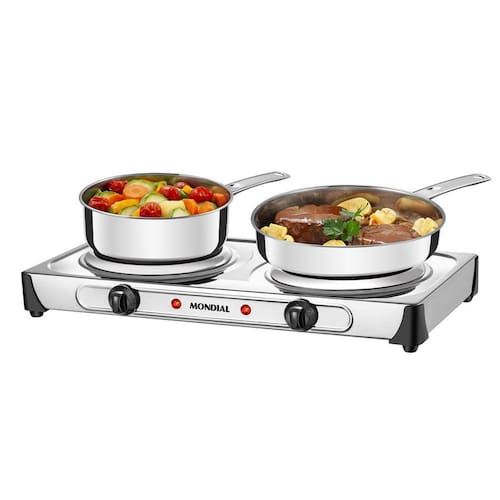 Fogão Elétrico Fast Cook Dual Mondial com acabamento em aço inoxidável, 2 chapas de aquecimento (100