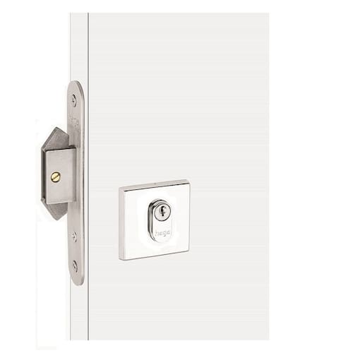 Cilindro : 131 (52mm) Roseta: 524 em zamac Broca: 45 mm Testa e Contra Testa: Cantos retos, fabricadas no material correspondente ao acabamento Contra Testa: Referência 610/620 – 2 furos Indicação de uso: Porta de correr externa