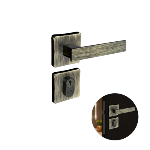 Máquina: 40 mm Modelo: Topazio Aplicação: Externa, Interna ou Banheiro Cilindro: 55 mm Chaves para cilindro: 2 unidades Maçanetas: Quadradas Acabamento: Antique