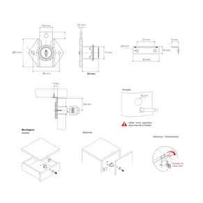 Medidas: 17 x 22 mm Versão com segredo único (mesmo segredo nas fechaduras) Rotação da chave: 180° Acabamento: Niquelado Instalação simples e segura