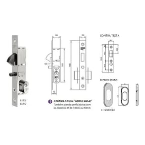 Fechadura 3f bico de papagaio linha goldcaracteristicas:- broca: 15mm- cor: branco- marca: 3f- modelo: linha gold 6115- testa: 20mm acompanha contra testa fechadura para porta de correrutilizada em serralheria de aluminio Funciona apenas na linha goldAtende tambem perfis búzios com os cilindro 3f de 74mnm e 90mm