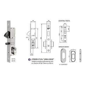 Fechadura 3f bico de papagaio linha goldcaracteristicas:- broca: 15mm- cor: branco- marca: 3f- modelo: linha gold 6115- testa: 20mm acompanha contra testa fechadura para porta de correrutilizada em serralheria de aluminio Funciona apenas na linha goldAtende tambem perfis búzios com os cilindro 3f de 74mnm e 90mm Ean: 7899105850732