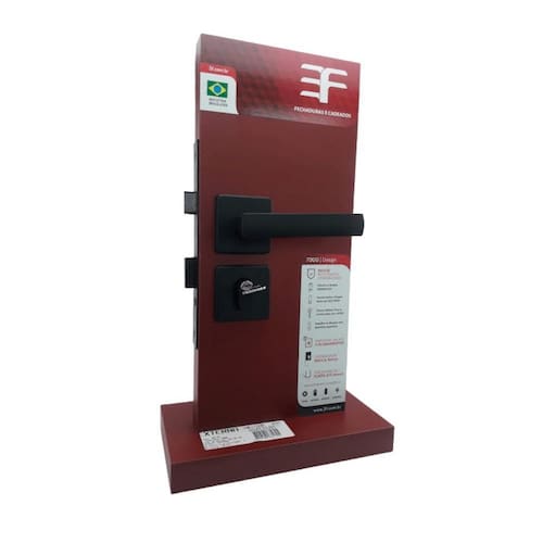01 Fechadura 3F Roseta Quadrada INTERNA Preto Fosco e 01 manual de instalação