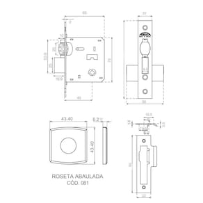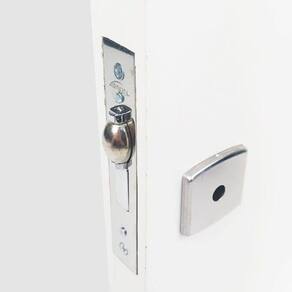 Especificações: - Fabricante: Arouca - Distância de Broca: 45mm - Roseta Quadrada em Inox Polido modelo 081 Abaulada - Testa e Contra Testa Latão com acabamento Cromado - Segurança: Alta - Tráfego: Intenso - Corrosão: 3 - Para porta com espessura entre 35mm até 45mm