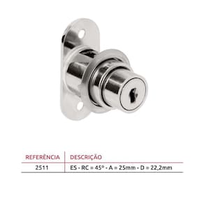 Cilindro e tambor em zamac; Espelho em aço inox; Extração simples da chave; Rotação da chave de 45°.