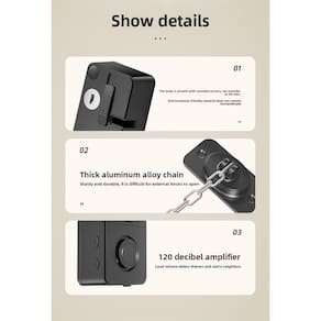 Esta trava de alarme de porta e janela atualizada oferece som de alto decibel para máxima segurança. Ideal para proteção doméstica, possui um mecanismo de bloqueio duplo para maior segurança, impedindo o acesso não autorizado. A trava é equipada com um sistema de alarme embutido que soa alto quando acionado, garantindo que possíveis intrusos ou aberturas não autorizadas sejam detectados imediatamente. Perfeita para geladeiras, gavetas e janelas, essa trava de segurança infantil impede o acesso a áreas perigosas, oferecendo um ambiente seguro para famílias com crianças pequenas. Fácil de instalar, essa trava oferece segurança confiável sem procedimentos complicados. Seu elegante design preto complementa vários eletrodomésticos e móveis, combinando-se e fornecendo proteção eficaz. Feita de materiais duráveis de ABS e liga, esta trava de alarme foi construída para durar. Ele garante desempenho a longo prazo com manutenção mínima, tornando-o um investimento inteligente para qualquer sistema de segurança residencial. Especificação Material: ABS/Liga Cor: Preto Tamanho do pacote: 8,5x5,1x5,2 cm Peso da embalagem: Aprox. 0,075 kg Lista de embalagem: 1 x trava de segurança com alarme