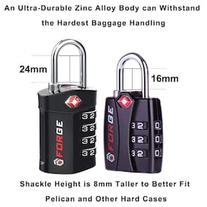 As fechaduras aprovadas pela Forge TSA são oficialmente reconhecidas e aceitas pela Administração de Segurança do Transporte. Fabricados com um corpo robusto de liga leve, eles são construídos para suportar até mesmo as condições mais adversas. Nosso mecanismo interno patenteado garante segurança de alto nível. Atualize suas fechaduras de viagem hoje para ficar tranquilo, seja você um viajante frequente, guardando equipamentos valiosos em um estojo rígido ou guardando seus pertences em um armário, as fechaduras forjadas são a escolha ideal para uma fechadura de armário.