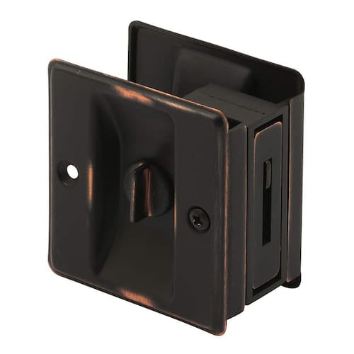 Prime-Line N 7319 Trava de privacidade para porta de bolso com puxador – Substitua fechaduras antigas ou danificadas de forma rápida e fácil – Bronze clássico (embalagem única)