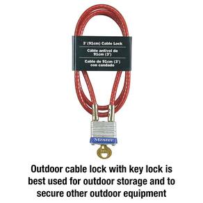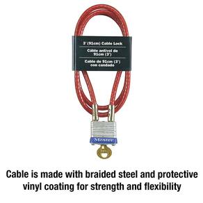 - A trava de cabo com trava é feita com aço trançado e revestimento protetor de vinil para resistência e flexibilidade