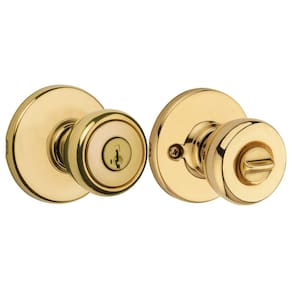 Kwikset Maçaneta de porta de entrada Tylo com fechadura e chave, maçaneta externa com chave segura, maçaneta para entrada frontal e quartos em latão polido