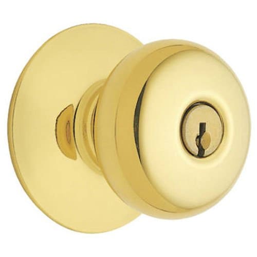 Brilhante de latão, design de Plymouth, conjunto de fechadura de entrada, a opção de três Trinco com dois pinos, universal 2 – 3/8 " e 2 – 3/4 " testa, botão de latão sólido, acabamento de 10 anos de garantia, garantia vitalícia mecânico, ANSI grau 2 de qualidade, caixa de pacote.