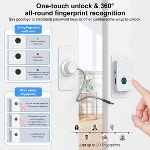 - ?Dicas?Use este produto estritamente de acordo com o manual de instruções. 1. Antes da instalação, carregue totalmente. Adaptador de 5 V/carregador portátil para carregar (não incluído) 2. Pressione com força por alguns segundos e aguarde 48 horas após a instalação para garantir a máxima colagem adesiva. 3. Siga as instruções para adicionar sua impressão digital.