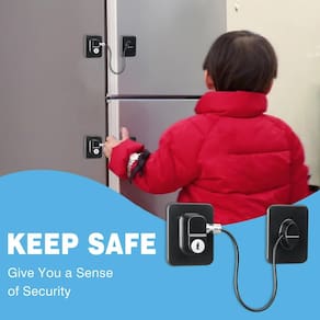 Especificação Material: Liga Cor: Preto Peso: 130 g Tamanho do produto: 6x4,6 cm Lista de embalagem: 2 x fechadura Design de alta segurança: apresenta um sistema confiável de bloqueio com chave para impedir eficazmente o acesso de crianças ou não autorizado a geladeiras e armários. Instalação adesiva forte: equipada com almofadas adesivas 3M VHB premium para uma instalação rápida e sem ferramentas que permanecem firmes no lugar. Cabo durável e anti-corte: o núcleo de fio de aço inoxidável coberto com revestimento de PVC oferece alta resistência e resiste a cortes ou puxões. Compatibilidade universal: funciona em vários eletrodomésticos e móveis, incluindo geladeiras, gavetas, armários, janelas e muito mais. Sistema de chaves conveniente: vem com chaves universais compatíveis com travas do mesmo modelo para facilitar o uso e o acesso de backup.