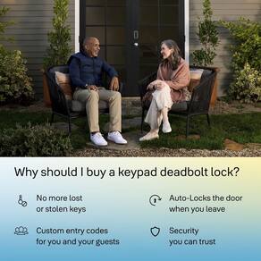 - Entrada sem chave para todos: crie e armazene até 20 códigos de entrada do seu cadeado para que amigos, familiares, colegas de casa e indivíduos de confiança possam ter acesso seguro quando precisarem, mesmo se esquecerem da chave.