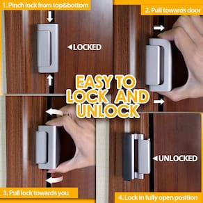 - [Fácil de usar]: coloque o dedo indicador na parte superior da fechadura da porta e o polegar na parte inferior e deslize a trava para fora da placa base junto com a porta na direção das dobradiças e puxe para fora. Não são necessárias ferramentas para abrir, apenas um pouco de prática. Este protetor de porta evita arrombamentos, mas é fácil de abrir em caso de emergência. Você ficará