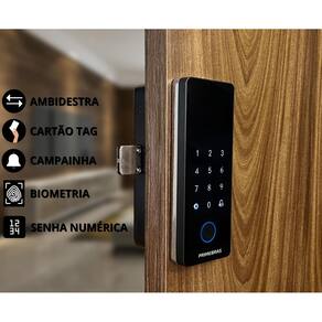 Fechadura Primebras Athenas Agora você tem toda praticidade de não precisar mais andar com chaves, com total segurança a um toque. Fechaduras digitais Primebras Apresentamos agora fechadura para porta de madeira pivotante Primebras Athenas. Abertura por biometria, senha, tag's, senha dinâmica que lhe garante facilidade, segurança e tecnologia. Você pode cadastrar até 100 biometrias, 100 senhas, até 100 tag's ou controle remoto. Assim você pode manter sua casa e seu escritório seguros. É a praticidade a serviço de você Com a fechadura athenas, se alguém digitar a senha errada algumas vezes, a fechadura irá disparar um alarme. Além disso, a fechadura irá emitir um aviso se as pilhas estiverem fracas. É econômica, com baixíssimo consumo de pilhas, utilizando pilhas alcalinas tem a durabilidade média de 12 meses. Caso termine a pilha você pode energiza-la momentaneamente através de um cabo usb Fechadura Primebras Athenas segurança, tecnologia, conforto a um toque. Em caso de batente de alvenaria solicitar após a sua compra. Homologação Anatel: 146622110390 Marca: Não Informado Ean: 7898967429544