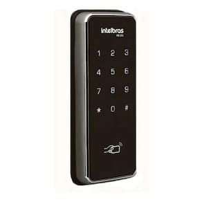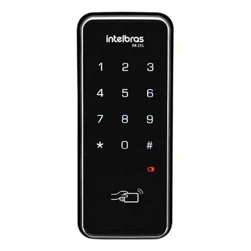 A fechadura digital de sobrepor FR 201 é utilizada para residências, apartamentos e escritórios. Possui como métodos de identificação senha numérica, através de um teclado de 12 teclas, e chaveiro de proximidade. Sua instalação é simples e a alimentação é feita por 4 pilhas AA. Até 100 chaveiros e 4 senhas A FR 201 pode ser aberta via senha numérica (cadastro de até 4 senhas) pelo teclado touch screen ou chaveiro RFID (cartão de proximidade). Função Senha protegida Com essa função a segurança é ainda maior. Ela dificulta que descubram as senhas pelas marcas de digitais deixadas no teclado da fechadura. Quando habilitada, fornece números aleatórios a serem digitados pelo usuário após a digitação da senha. Baixo consumo de bateria Alimentação por 4 pilhas alcalinas AA, com autonomia de 1 ano com 10 acessos diário em média. Sinalização de pilha fraca com até 1 semana de antecedência. Alarme anti arrombamento Um aviso sonoro (1 minuto) é acionado na própria fechadura quando negadas 5 tentativas consecutivas de abertura ou na tentativa de violação. Função Não perturbe A fechadura oferece mais privacidade ativando a função Não perturbe. Com ela é possível desabilitar a abertura da fechadura pelo lado de fora. Dimensões e peso Conteúdo da embalagem» 1 unidade interna» 1 unidade externa» 1 batente» 4 pilhas alcalinas AA» 1 kit instalação» 1 gabarito de fixação» 6 calços para suporte das trancas» 1 guia do usuário» 3 chaveiros de proximidade