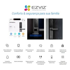 Fechadura Digital Ezviz DL05 Wi-Fi Tag Biométrica Ip65 PretoFechadura Inteligente com Impressão Digital Ezviz DL05Transforme a segurança da sua casa com a Fechadura Inteligente EZVIZ DL05! Com design moderno e funcionalidades avançadas, esta fechadura oferece múltiplas formas de acesso e controle, garantindo praticidade e proteção para você e sua família.Características Principais:Vários Métodos de Destravamento: Impressão digital, senha, cartão de proximidade, chave mecânica (em emergências) e controle via aplicativo.Controle Simplificado via Aplicativo EZVIZ: Gerencie acessos e receba notificações em tempo real.Alertas Móveis em Tempo Real: Receba notificações push quando sua porta é aberta ou quando a bateria está fraca.Códigos de Acesso Temporários e Antiespionagem: Crie senhas temporárias para visitantes e utilize códigos antiespionagem para maior segurança.Trava de Segurança para Crianças: Evita que crianças ou pets abram a porta acidentalmente.Campainha Eletrônica Integrada e Alarme Antiviolação: Segurança adicional com alarme integrado.Design à Prova de Intempéries: Certificação IP65, ideal para uso externo.Fonte de Alimentação de Emergência: Compatível com fontes de alimentação de emergência.Integração Inteligente com Câmeras EZVIZ: Monitore quem entra e sai com vídeos gravados automaticamente.Especificações Técnicas:Modelo: CS-DL05-R100-WBCP-GR(M) / CS-DL05-R200-WBCP-GR(M)Material do Painel: Liga de alumínioTamanho do Painel: 360 × 67 × 27 mmCor: Cinza metálicoTipo do Corpo da Fechadura: Corpo de levantarCilindro de Travamento: 5085 / 6068À Prova de Intempéries: IP65 (painel frontal)Carregamento de Emergência: Tipo CEnergia Operacional: 8 pilhas alcalinas AA 1,5VMétodos de Destravamento: Impressão digital, senha, cartão de proximidade, chave mecânica, chave Bluetooth via aplicativo EZVIZ, códigos temporários, destravamento remotoCapacidade de Usuários: 50 unidadesCapacidade de Impressões Digitais: 50 unidadesCapacidade de Senhas: 50 unidadesCapacidade de Cartões: 50 unidadesMétodos de Transmissão: Wi-Fi 2.4GHz, BluetoothCódigos de Acesso Temporário: PermiteCódigos Antiespionagem: Permite (até 20 dígitos)Aviso de Bateria Fraca: PermiteModo Privado: PermiteGerenciamento de Usuários: PermiteNotificação em Tempo Real: PermiteTravamento Antiteste: PermiteAlarme Antiviolação: Permite. Erro inserido 5 vezes em 5 min, trava por 3 min.Controle Remoto: PermiteTrava de Segurança para Crianças: PermiteControle por Voz: Permitirá em breve (Google Assistente/Amazon Alexa)Espessura de Porta Suportada: 30 a 110 mmTemperatura de Funcionamento: -25°C a 70°CUmidade Operacional: 10% a 95%Certificações:CE (EMC / LVD / RED / ROHS)REACH SVHCWEEEUKCAObservações Adicionais:Observe que somente o painel externo da fechadura DL05 é resistente a intempéries.Atualmente, a DL05 é compatível com as câmeras a seguir para tirar uma foto ou gravar um vídeo em um determinado ângulo de visão predefinido com a detecção do sensor: H6c, C6N, CP1, TY1, TY2. A lista pode ser ampliada à medida que a EZVIZ lançar mais produtos compatíveis no futuro.A função de travamento automático é compatível ao usar impressões digitais, senhas ou cartões de proximidade para destravar a porta.Quando o modo privado está ativado, somente o administrador pode destravar a porta usando sua impressão digital, senha ou cartão de proximidade, ou qualquer pessoa que tenha a chave de emergência mecânica.Ao fazer a conexão via Bluetooth com o modo Wi-Fi desativado, a fechadura poderá funcionar até 365 dias com as pilhas totalmente carregadas, com base no uso de 10 aberturas por dia.Quando a fechadura estiver conectada via Wi-Fi, a vida útil das pilhas será reduzida devido às atividades na internet, e o uso real poderá variar de acordo com a estabilidade da rede ou outros fatores ambientais.Sempre que sua rede residencial não estiver totalmente estável, recomenda-se desativar o modo Wi-Fi para uma melhor utilização das pilhas da fechadura.Garanta já a sua Fechadura Inteligente EZVIZ DL05 e eleve o nível de segurança e conveniência da sua casa! Não perca a oportunidade de modernizar sua residência com a tecnologia de ponta da EZVIZ.Tags: Fechadura Inteligente, EZVIZ DL05, Segurança Residencial, Impressão Digital, Controle via Aplicativo, Resistência IP65, Alarme Antiviolação.Conteúdo da Embalagem:Fechadura inteligente com impressão digital DL05 (painel frontal + painel posterior + modelo de furação)Corpo da fechaduraSaco de parafusos padrãoSaco de parafusos do corpo da fechadura (2)Saco de parafusos posicionadoresParafuso de inversão (2)Pilha tamanho AA (8)Chave mecânica (2)Barra quadradaCartão de proximidade (2)Plugue de silicone (para o painel posterior)Informações regulamentaresGuia de início rápido
