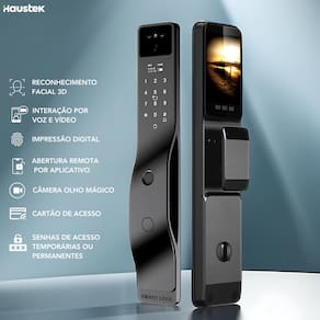 Fechadura digital, eletrônica, inteligente, totalmente automática com função de abertura por reconhecimento facial, impressão digital, cartão, senha touch screen, chave, Wi-Fi, aplicativo Tuya ou Smart Life com câmera.