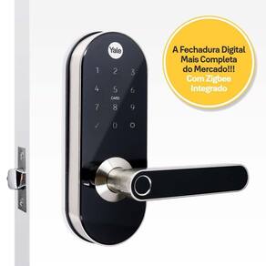 Fechadura digital ymc 420 d yale A ymc 420 d é a fechadura digital mais completa da yale, possui o módulo zigbee integrado e possui 5 opções de abertura: por biometria, senha, cartão tag e chave de segurança e por aplicativo quando utilizada em conjunto com o hub yale connect acessório vendido à parte