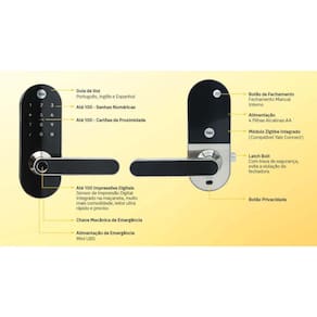 Fácil de instalar e configurar, a ymc 420 d possui maçaneta reversível com leitor de impressão digital, travamento automático, leitor iluminado para ambientes escuros, alimentação de emergência mini usb e alarmes de violação e intrusão.