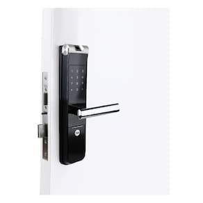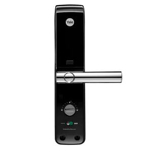 A Fechadura Digital YMF 40A vem com maçaneta reversível e dispensa uso de chaves, com opções de abertura por biometria, senha numérica e por aplicativo, quando utilizada em conjunto com módulo Zigbee e o Hub Yale Connect (acessórios vendidos à parte)