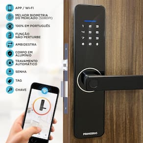 Fechadura Digital Biométrica inteligente Rio WiFi, sua solução completa para a era Smart, unindo conectividade Wi-Fi integrada com um design elegante em Black Piano, proporcionando segurança e modernidade a qualquer ambiente em sua casa ou escritório. Perfeita para portas de escritórios e residências em geral, a fechadura Rio oferece diversas funcionalidades avançadas para controle de acesso: • Abertura via até 60 biometrias, 100 senhas ou até 100 IC Cards. • Fechamento Automático para maior tranquilidade. • Gestão facilitada através do aplicativo Primebras Home. • Abertura remota para acesso conveniente via aplicativo. • Senhas de 6 a 8 dígitos para maior segurança. • Senha temporária para visitantes. • Modo não perturbe para evitar interrupções indesejadas. • Registro de entrada para monitoramento. • Sensor biométrico com resolução de 508 DPI para precisão no reconhecimento. • Administração compartilhada para gestão flexível de acesso. • Automação integrada para maior comodidade. • Ajustes de data/horas conforme sua preferência. • Ajustes de volume personalizáveis. • Seleção de idioma, com suporte ao Português. • Bloqueio temporário após cinco tentativas mal sucedidas de abertura. • Sinalização audiovisual de pilha fraca para evitar surpresas.