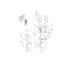 • 02 CHAVES 01 CILINDRO 5,5cm 01 MAQUINA 55mm 01 PAR DE ROSETA 01 CONTRATESTA 01 TESTA FALSA